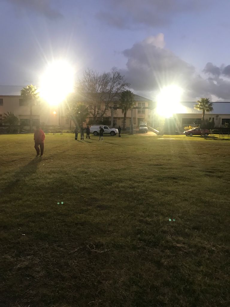SP has taken its first steps into a new phase of its existence, with the installation of a set of floodlights facing the AG De Villiers field, thanks to ex-student Kurt Maritz of Maritz Electrical, who donated the lights themselves, and sponsored the labour costs. (Kurt also donated the electronic signpost on the school hall.) The next stage, erecting pylons along the sides of the field at at the Constantiaberg Hospital end, is in the planning. The intention is to approach other ex-students to assist with funding.